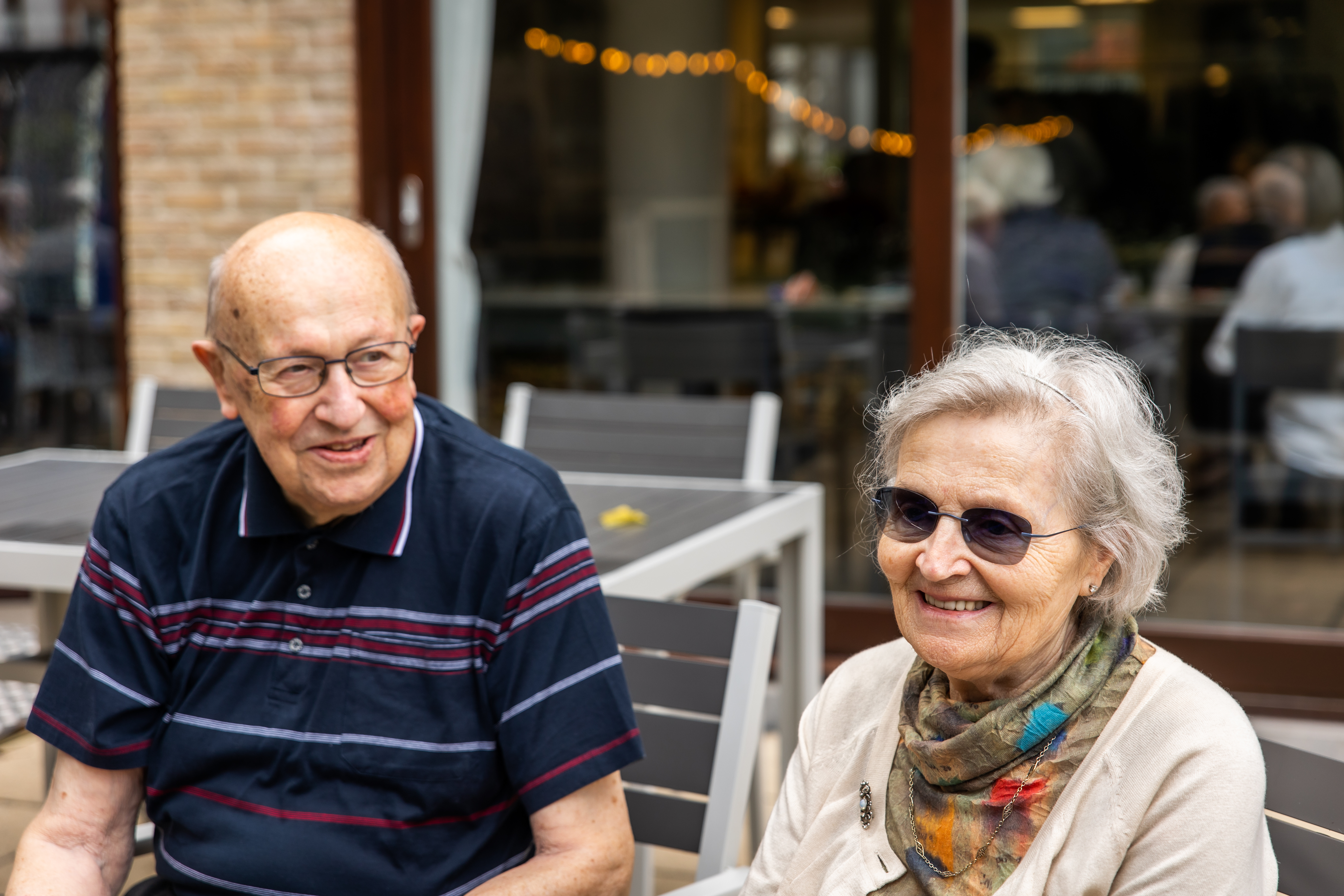 Mijn man had Parkinson en was bang dat hij plots geen trappen meer zou kunnen doen. Maar eigenlijk ben ik blij dat hij niet is moeten verhuizen. Ik denk niet dat hij het zo makkelijk zou gehad hebben hier. Vrouwen zijn toch gemakkelijker in het leggen van sociale contacten hé.