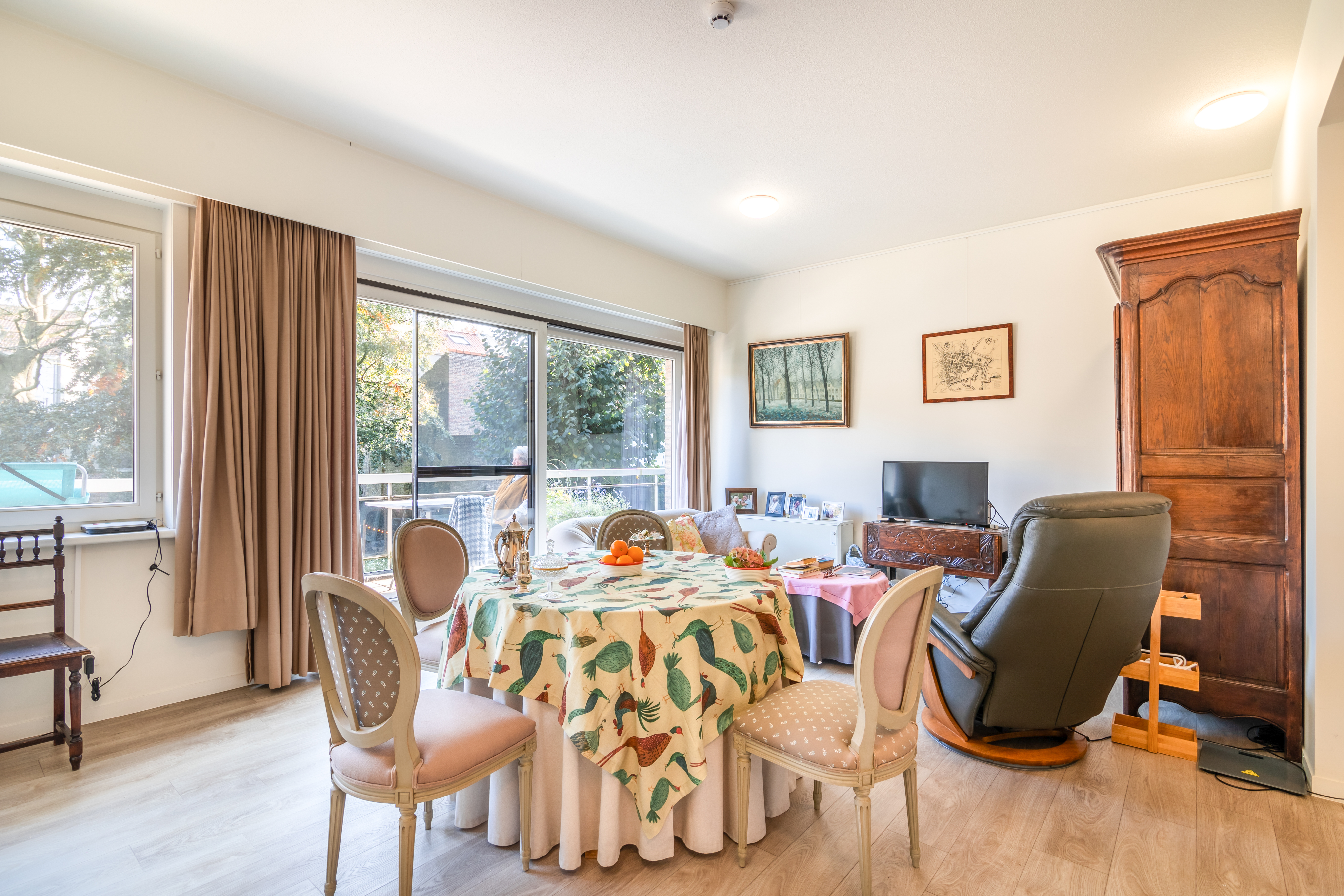 In deze prijs zitten de noodoproepen 24/7, familiale en brandverzekering, het activiteitenaanbod en omkadering door de woonassistente inbegrepen.